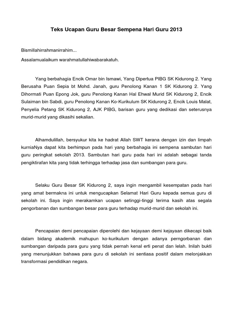Teks Ucapan Ydp Pibg Hari Guru Pdf