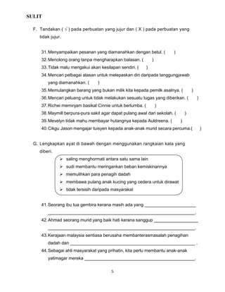 Kertas Soalan Peperiksaan Akhir Tahun Pendidikan Moral Tahun 5 Tcer My